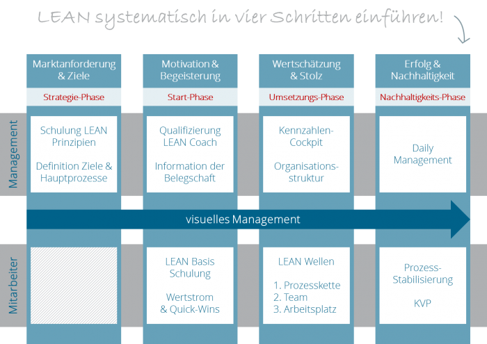 Als Team führen wir LEAN in vier Phasen systematisch und mit klaren Zielen ein!